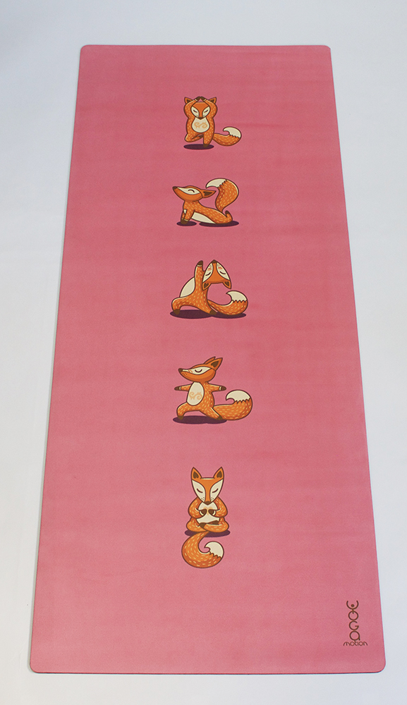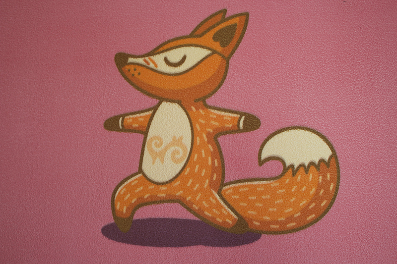 Design pro děti s lišťičkou v různých jógových pozicích. Barevná kombinace podporující hravost a jemnost.