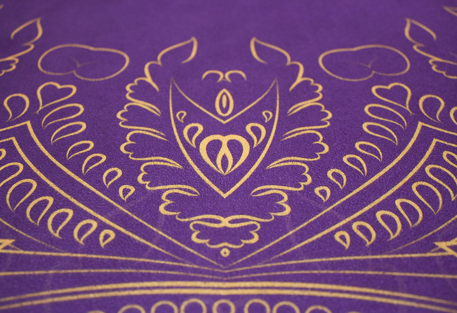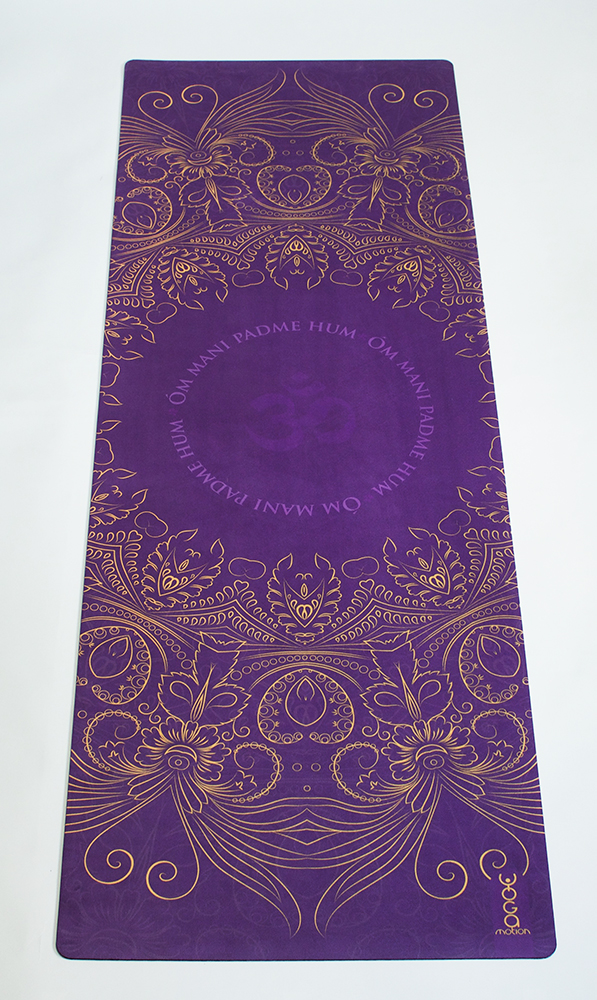 Design v elegantní barevné kombinaci se známou tibetskou mantrou "Om Mani Padme Hum" ideální pro jógu a meditaci.